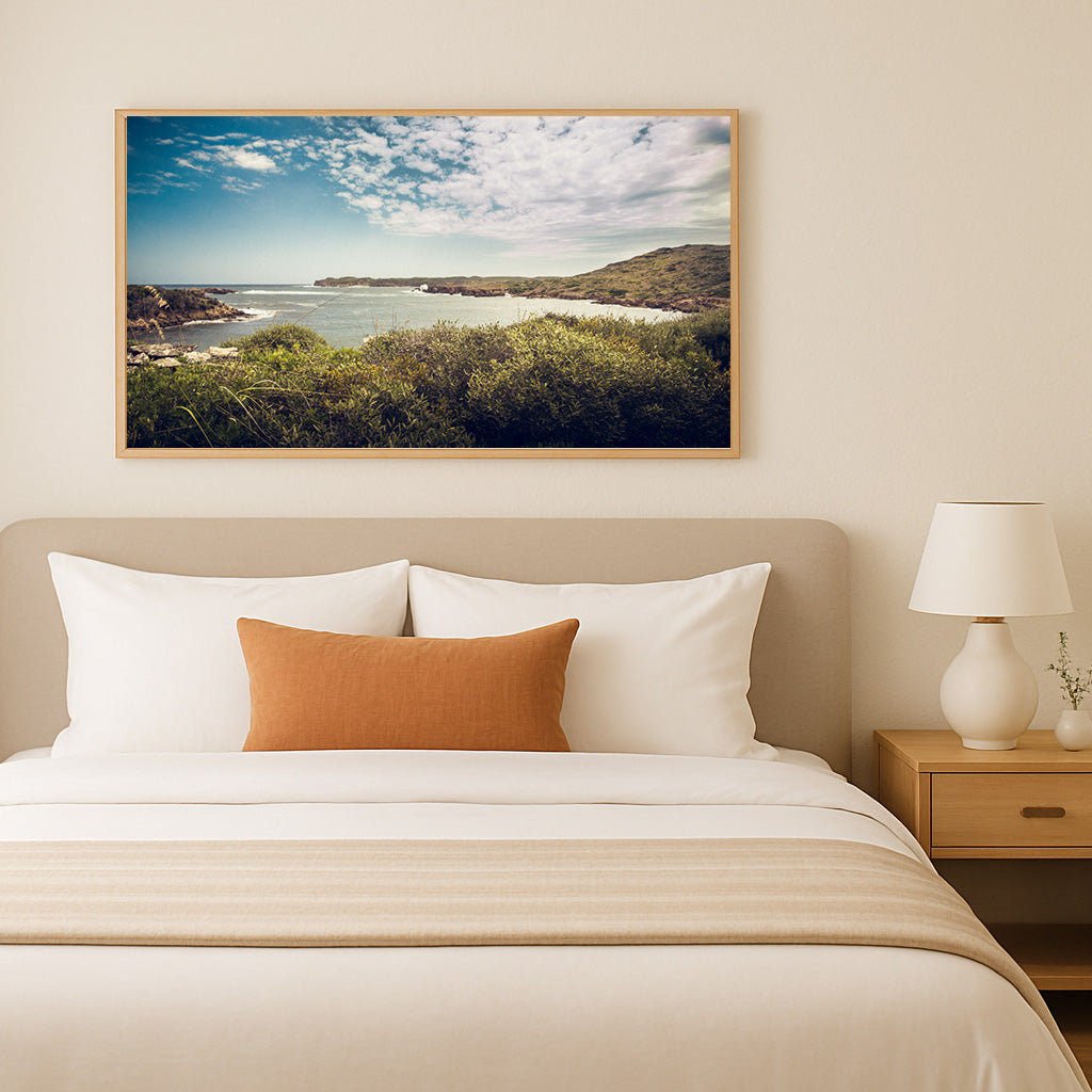 Türkisblaues Wasser, raue Felsküsten und das sanfte Spiel von Licht und Meer – dieses Poster fängt die unvergleichliche Schönheit Menorcas ein. Die spanische Mittelmeerinsel zeigt sich hier von ihrer natürlichsten Seite: wild, ruhig und voller mediterraner Leichtigkeit.